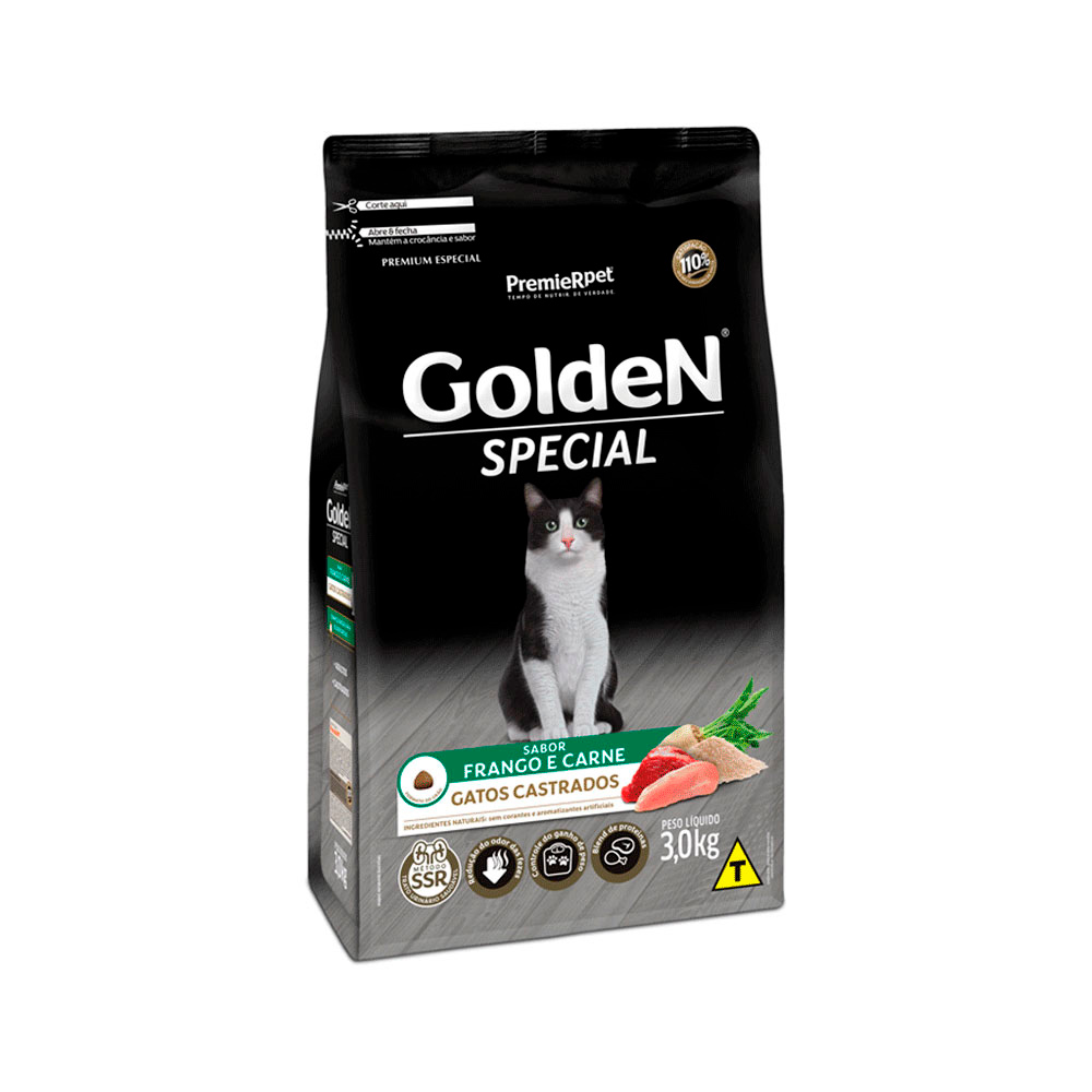 Ração Golden Special para Gatos Castrados Sabor Frango e Carne - 3Kg