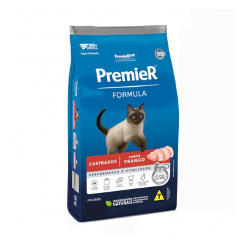 A Ração Seca Premier Fórmula Frango para Gatos Castrados é um alimento Super Premium, desenvolvido especialmente para atender às necessidades nutricionais de gatos castrados a partir dos 6 meses de idade. Com ingredientes de alta qualidade, esta ração é formulada para fornecer uma dieta completa e balanceada, essencial para a saúde do seu gato. A adição de L-carnitina e a redução de calorias ajudam a controlar o ganho de peso, enquanto o blend de prebióticos promove uma saúde intestinal adequada. Além disso, o hexametafosfato de sódio contribui para a prevenção da formação de tártaro, assegurando uma saúde oral ideal. Com tecnologia SSR, esta ração também auxilia na prevenção de cálculos urinários, tornando-se a escolha perfeita para a alimentação do seu felino.