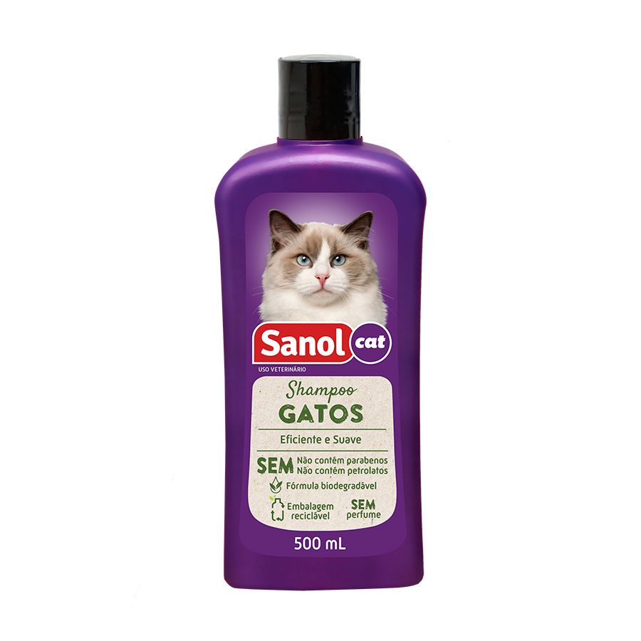 Aplique uma quantidade adequada do Shampoo Sanol Cat sobre os pelos molhados do gato, massageie suavemente até formar espuma e enxágue bem. Evite o contato com os olhos do animal.